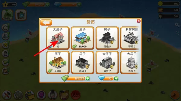 2、在货币建筑界面,选择大房子等建筑,这些建筑是城市人口居住和发展的基础,可推动城市人口增长和经济发展。