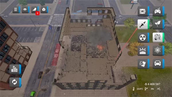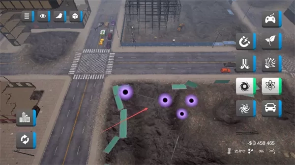 1. 挑选右侧诸如黑洞、核爆之类的灾害工具,于城市区域进行释放,以营造破坏效果。