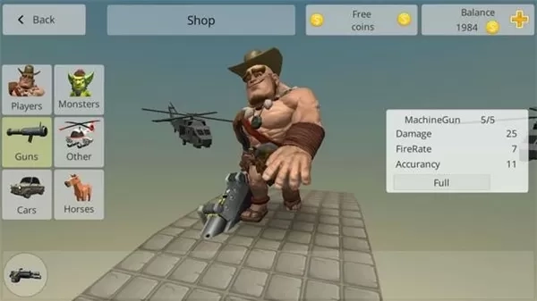 2、在琳琅满目的枪械中挑选机枪时,能看到一个方框,框内有数字以及一个升级按钮。按钮旁边显示的金钱数额,即为升级所需花费。当攒够相应金钱,将机枪升级至满级后,只需几枪就能撂倒一个人。