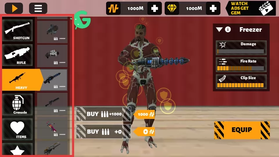 2、在商店的武器列表中,选择【SHOTGUN】【RIFLE】【HEAVY】等武器,根据需求购买或装备,提升战斗能力。
