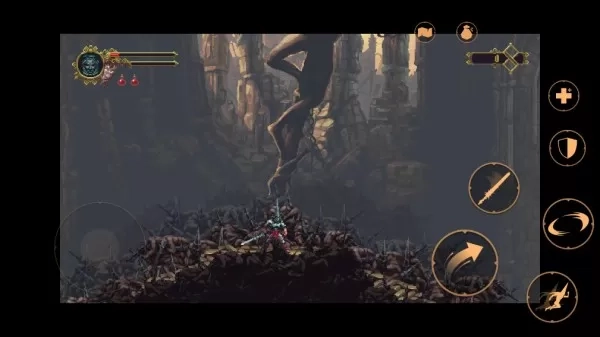 《亵渎》手机版是一款拥有精美像素画风的类恶魔城游戏。游戏设定在虚构的宗教受难之地Cvstodia,玩家将扮演头戴荆棘尖盔的沉默战士“忏悔者”,手持象征原罪的巨剑“孽刃”,于血肉与信仰相互交织的扭曲世界里探寻真相,挑战那些被奇迹诅咒的怪物与神明,揭开隐匿于残酷美学之下的救赎史诗。玩家在2D横版地图中穿梭冒险,需要巧妙解开谜题、迎战强大敌人,还能够自由搭配不同的战斗流派,从而体验深度操作与黑暗史诗般的剧情。