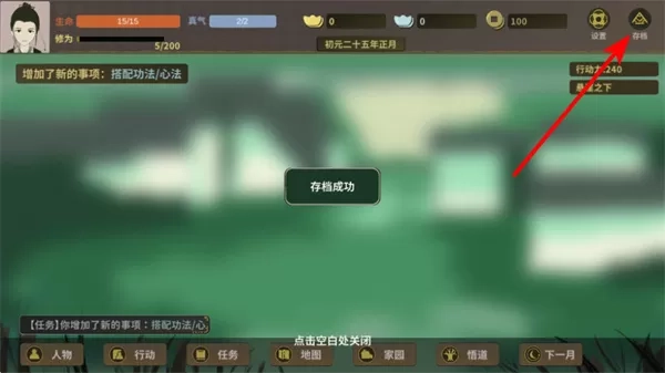 3、点击右上角存档按钮,及时保存游戏进度,避免因意外情况丢失游戏数据,保障游戏体验的连续性。