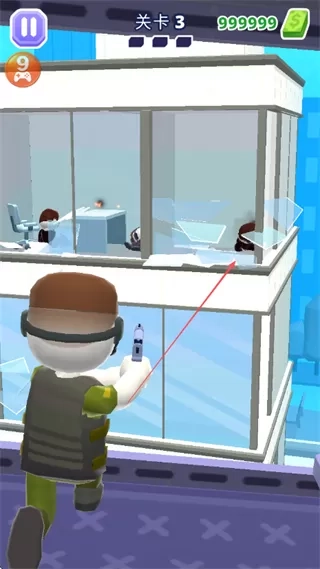 1、在关卡3中,观察建筑内敌人的分布,瞄准多个敌人的连线路径,实现双杀甚至多杀,高效消灭敌人。