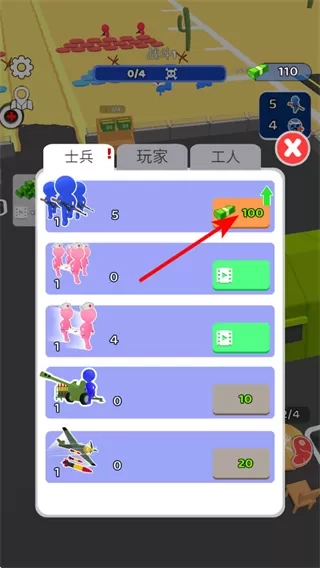 4、在士兵招募界面,花费金币解锁蓝色士兵,士兵是战场作战的主力,解锁更多士兵可增强部队战力,完成目标。