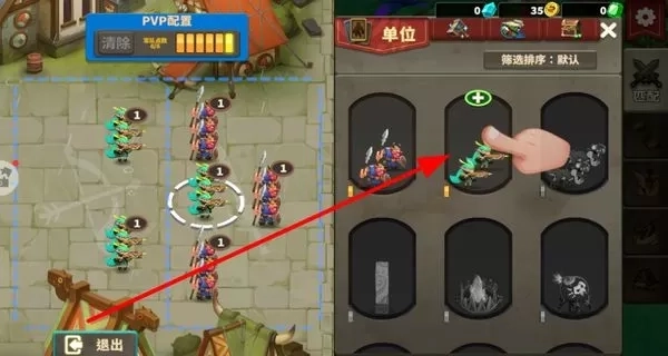 2、布置士兵,依据不同兵种的攻击、防御等特性,合理安排各类士兵的位置,构建出兼具防御韧性与进攻爆发力的战斗阵型。