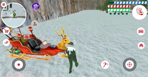1、这是一款扮演圣诞老人自由犯罪的手机游戏,在开始之前可以为自己的圣诞老人配好装备