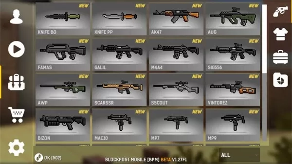 2、点击右侧的背包商店标识,这里是各种各样的武器,大家根据自己的喜好选择。