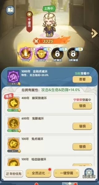 首先是魂灵重置功能。已完成进化的魂灵可通过此操作还原年份与阶级状态,同时返还全部培养材料,确保资源不浪费,让玩家可以安心投入前期养成。其次是魂灵升星,通过重复获得相同魂灵的碎片可进行星级提升,不仅能增强基础属性,还能解锁随机被动技能,进一步丰富战斗策略。