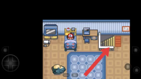 2、画面呈现像素风格,展示了游戏中室内场景,图中有宝可梦大钳蟹,根据提示移动人物到相对应的位置。