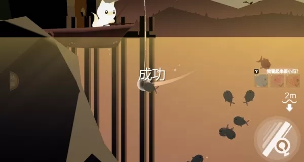 3、当你第一次投掷的时候,深度为2米,正好钓到了一条鱼,钓鱼成功。