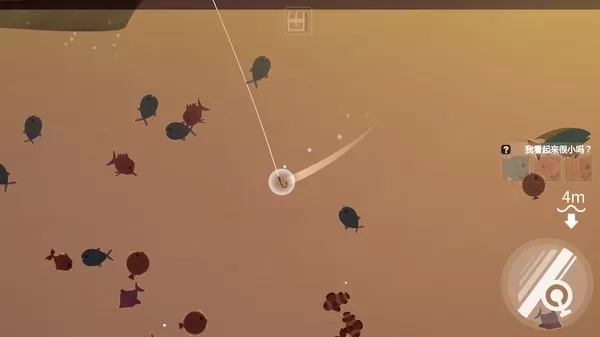 3、按深度解锁珊瑚礁、沉船遗迹等场景,深海区域藏有百斤石斑、荧光水母,越深处鱼种越稀有珍贵。