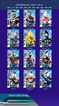 2. 接下来你会看到奥特元次卡牌大全,所有的奥特卡牌都在这里了,并且随着德凯奥特曼电视剧的更新,这里的卡牌也会随之增多。