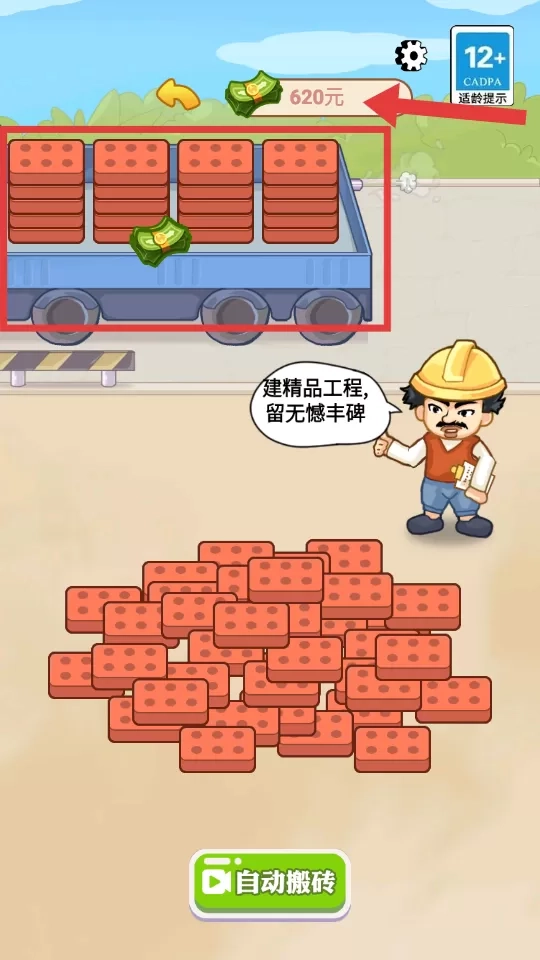 4、持续搬运砖块,当把卡车装满砖块后,就能获取更为丰厚的金币奖励。通过这样不断地积累财富,为后续诸如偿还债务、拓展事业等实现逆袭的关键步骤,打下坚实的经济基础。