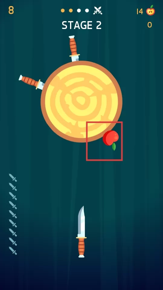 2、观察刀具数量和旋转圆盘,找准时机发射刀具,避免碰撞,顺利通过关卡。