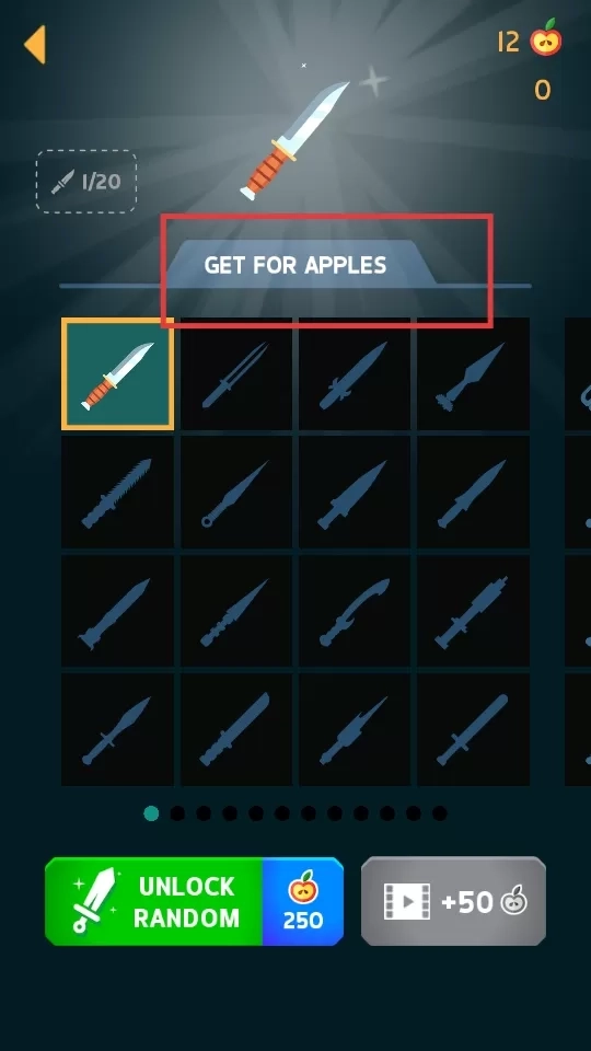3、在解锁系统中,玩家可通过砍苹果来收集新飞刀。这些飞刀有着多样的外观,属性也各有差异,为玩家提供了丰富的选择。收集要素充分满足玩家的探索欲望,而个性化配置则进一步提升玩家的归属感。