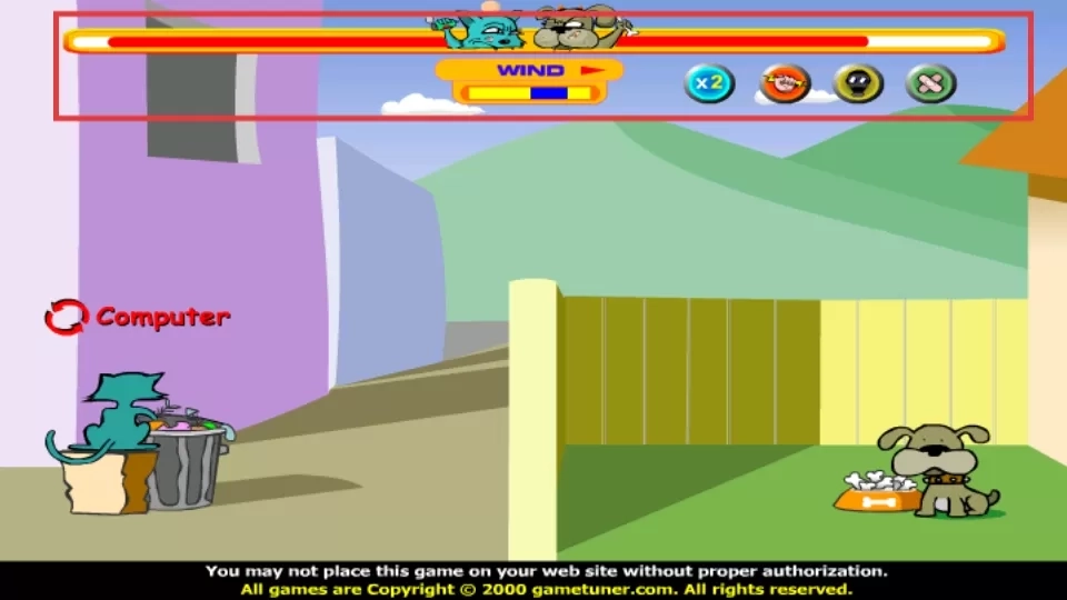 3、关注上方的风力和能量条,根据提示调整攻击策略,应对对手的攻击。