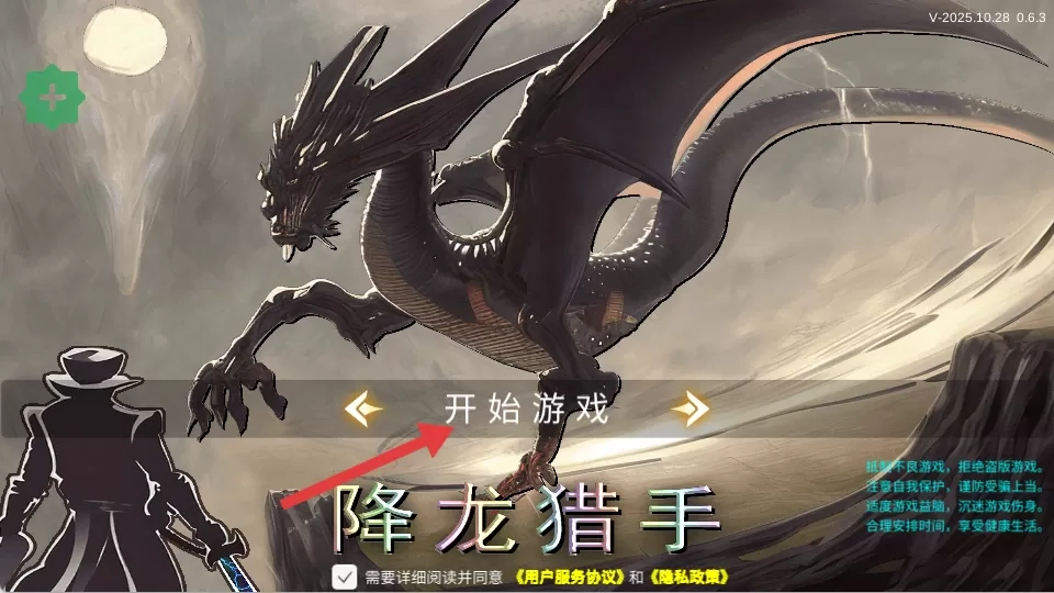 1、点击【开始游戏】,进入游戏,开启降龙狩猎之旅。