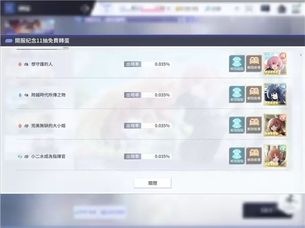 抽到「解放服装」的回忆就可同时获得服装(角色)