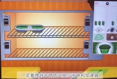 2、将蛋糕放入烤箱,但一定要记得省下金币购买闹钟和提示器,这能帮你掌握烘焙时间。
