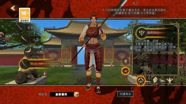 大刀的物理攻击高于魔法攻击,适合武功系列角色。