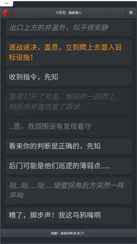 《六芒花隐秘潜入》是一款趣味性十足的文字解密游戏。在游戏里,你将化身幕后指挥官,统领手下的猎手与特工,持续执行各类非常规特殊任务。其玩法颇具烧脑性,还融入了解密元素,你得在游戏中设法各种高难度谜题。在《六芒花隐秘潜入》中,每一步决策都需完美执行,一旦决策失误,便可能致使同伴丧生。感兴趣的小伙伴,快来《六芒花隐秘潜入》畅玩吧。
