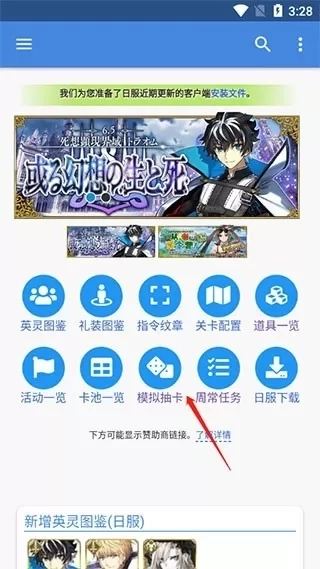 2、核心辅助功能实用:支持模拟抽卡,玩家可提前体验抽卡概率,规划抽卡策略;实时更新活动一览与卡池信息,不错过关键活动与心仪卡池;还能直接日服 FGO,无需额外寻找渠道,一站式满足玩家游戏辅助需求。