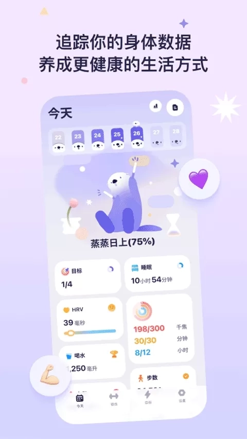 通过完成健康任务(如按时喝水、早睡)喂养虚拟海獭,解锁专属饰品、场景道具,让自律过程充满游戏化成就感。