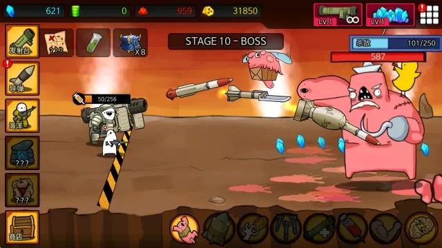 2、每过10关都会出现一个BOSS,点击屏幕可以更快的发射导弹。