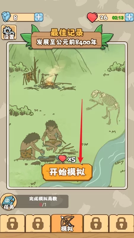 1. 轻点【开始模拟】,即可踏入游戏世界。此时,时间仿佛倒流,回到了公元前一万年,那时的人类,尚处于蒙昧初始的阶段,一切都宛如刚刚起步,从无到有。
