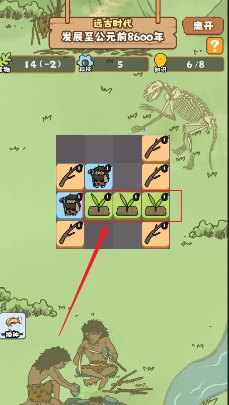 5、初始阶段玩家拥有【播种】技能,长按该技能图标并拖拽至空白地块,即可种下第一颗农业文明的种子。