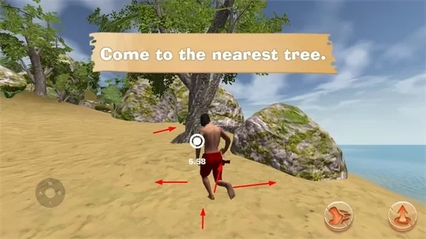 1、根据提示移动到最近的树,这是获取资源的第一步,开启生存之旅。