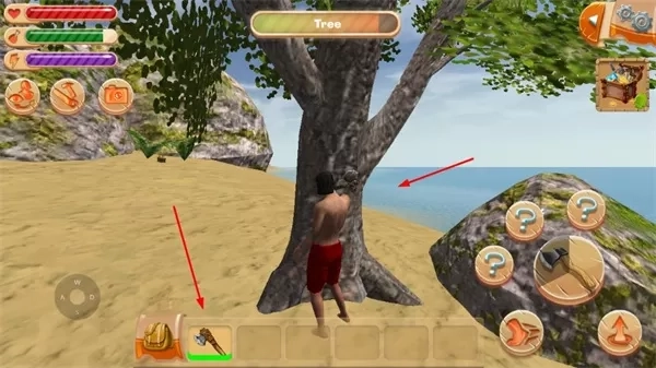 对角色的饥饿、体力和生命值这三项关键指标进行实时监测。一旦这些指标出现下降,角色的行动能力便会受到影响。此时,需即刻寻觅食物以补充饥饿,通过休息来恢复体力,从而保证在危机四伏的岛屿上能够维持正常的生存状态。