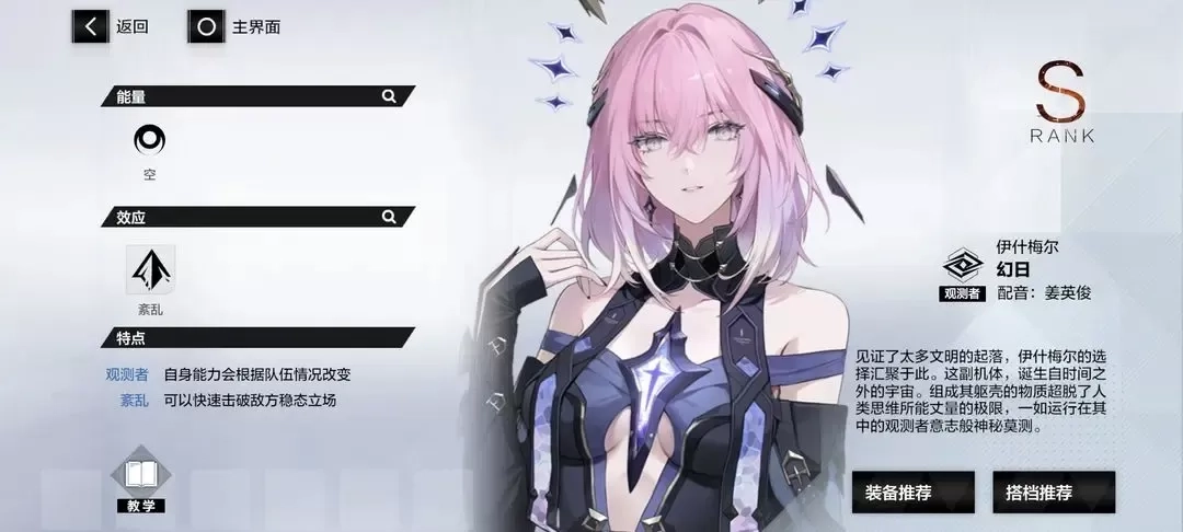 1、伊什梅尔·幻日(空属性输出角色,其唯一不足之处在于囚笼模式中不存在弱空属性的BOSS )