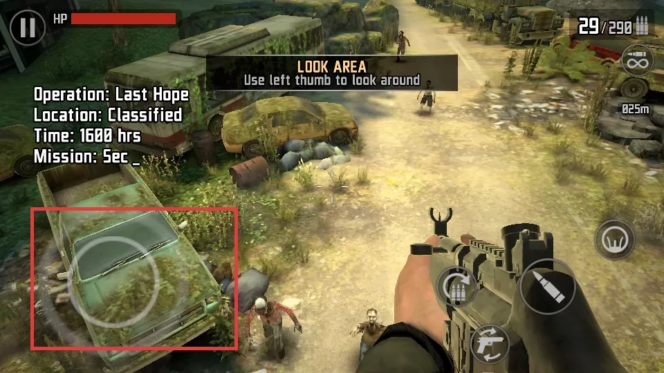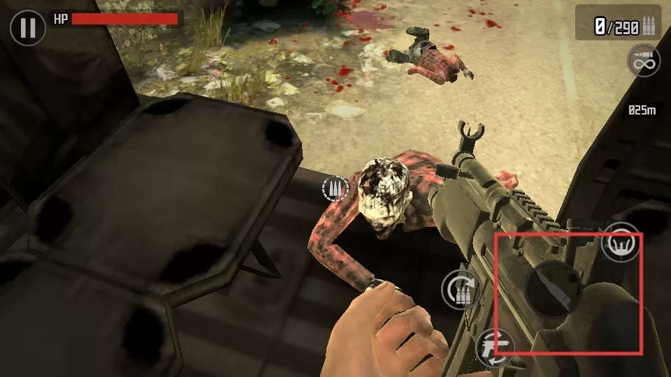 3、利用武器射击敌人,消灭僵尸,保卫自己,推进任务进程。