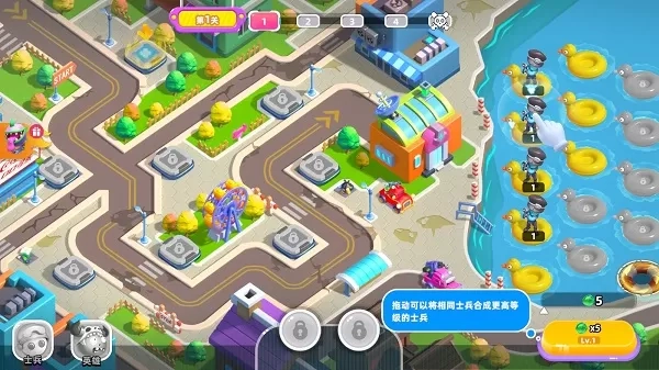 2、拖动相同士兵,可以合成更高等级士兵。