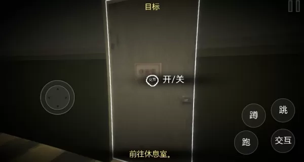 2、对准可交互物体(如门把手)时会出现提示图标,点击即可触发开门等互动效果。