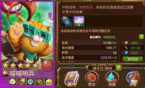 平民法师队的最后核心,相对于上述两个英雄,喵喵哨兵的获取难度相对较高,如果首刷能够获得这个英雄,那基本山就可以保证你的“法爷大队”已经成型了。千万不要被喵喵哨兵萌萌的外表所迷惑,这个英雄持续输出伤害能力很高,能提供范围伤害、致盲、减速、毒等一系列非常有用的效果,并且依旧能够降低对方的魔法抗性,并且喵喵哨兵是游戏中少数在后期能够觉醒的英雄,觉醒后能力会得到进一步的提升。