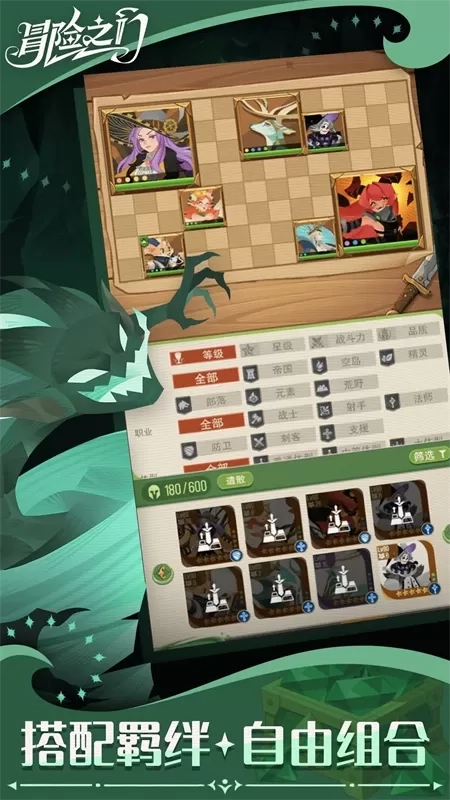冒险之门围绕英雄设计的卡牌构筑搭配玩法结合多元化的羁绊设计,赋予了玩家极高的自由度,同时免费重置返还资源的设计也给予了玩家充足的试错空间,让玩家能够自由尝试不同风格的阵容,享受运用智慧和谋略战胜敌人带来的乐趣。