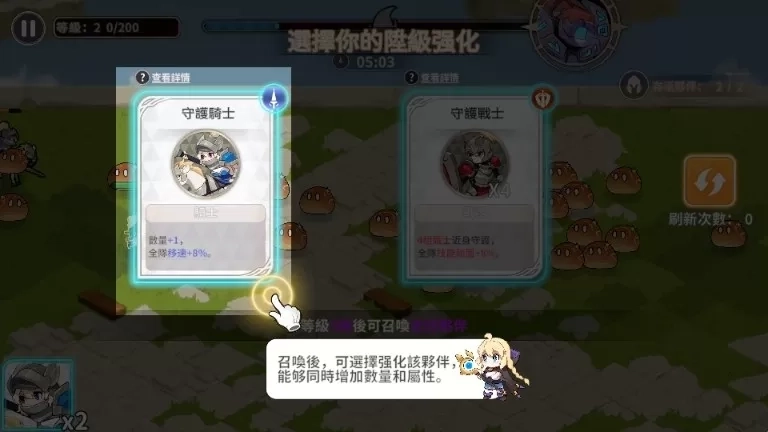 3、点击召唤可以增加一速,可以远距离冲锋的伙伴守护骑士。