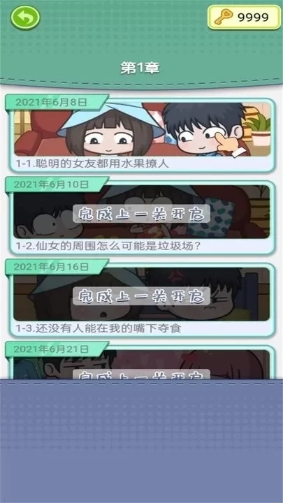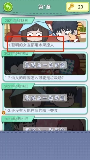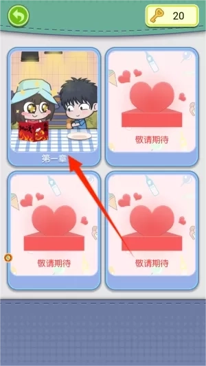 2、选择第一章开启初始剧情,完成章节中穿插的迷你游戏,优先挑战未解锁的主题模式。
