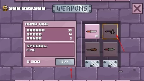 2、进入武器商店,消耗金币购买武器,提升角色战斗能力。