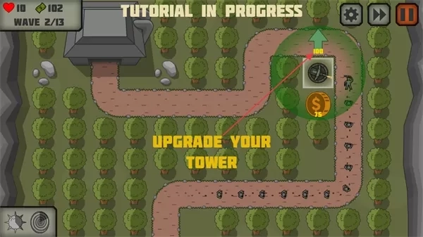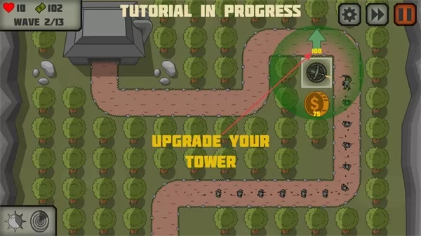 1. 通过消耗金币来升级防御塔,以此提高它的攻击力与攻击范围,强化对敌人的打击效果。