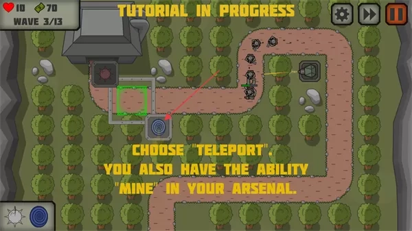 3、选择传送功能,可将敌人传送到指定位置,配合防御塔消灭敌人,还可使用地雷等武器辅助战斗。