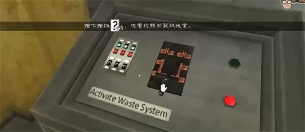 2. 走上旁边的楼梯,开启垃圾处理系统的控制面板,按下开关查看监控录像,从而获取关键剧情线索。