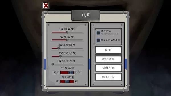 2. 打开设置界面,在这里能够对音乐、相机灵敏度等游戏参数进行设置。