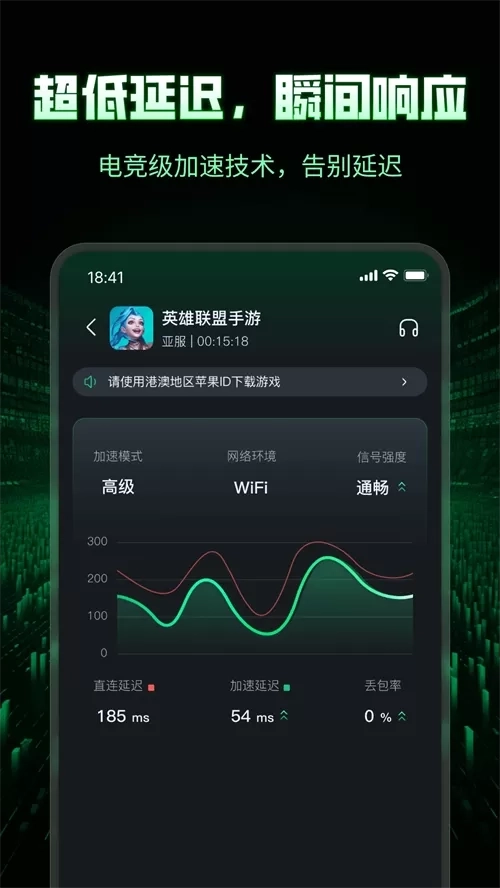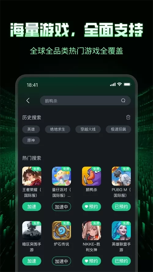 3、一键加速启动:打开应用即自动识别游戏,点击“加速”即可秒连,操作极简高效。