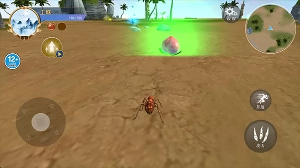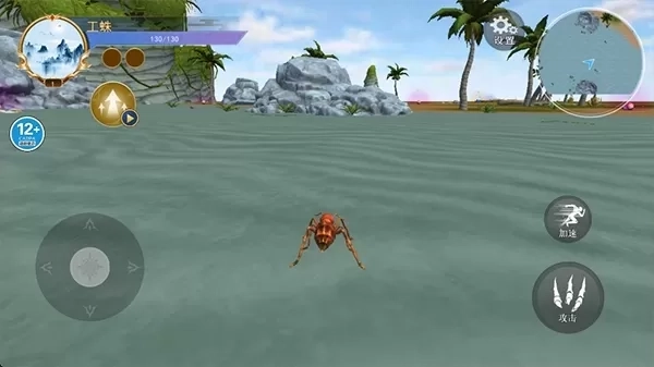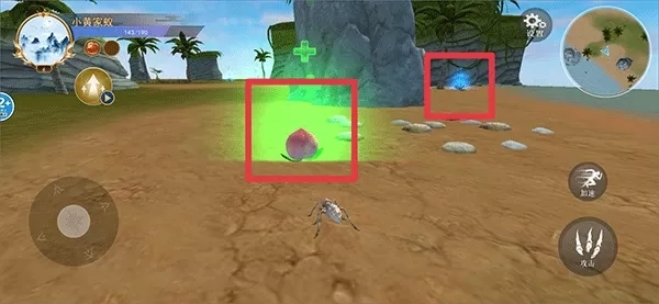 1、进入游戏后通过左边的摇杆控制蜘蛛移动到猎物前后,使用攻击按钮将猎物猎杀