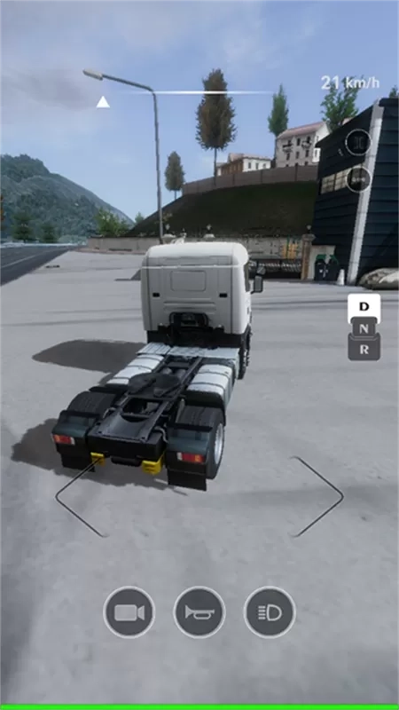 7、接到任务后即可开启运输。在游戏中,车辆转向由屏幕左边控制,加速与刹车位于屏幕右边。启动车辆时,需点击右边标有字母“D”的按钮,车辆方能前进;若要后退,则按“R”键。
