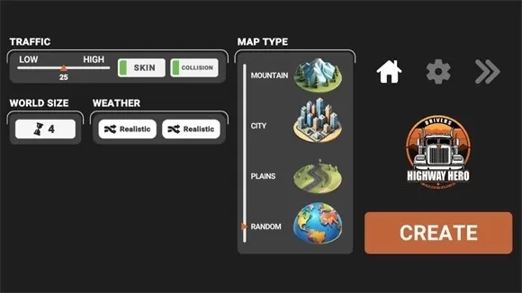 2、然后选择地图的样式,自定义地图的天气,选好后点击create按钮进入地图。