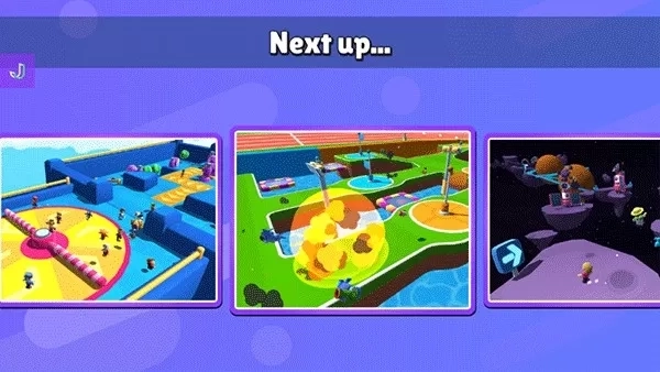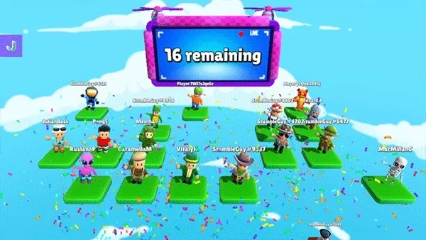 6、每一个小关卡结束后,所有玩家出现在一个个的小格子中,之后关卡挑战失败的玩家会向下掉落结束游戏,只有淘汰所有玩家才能获得游戏的胜利。